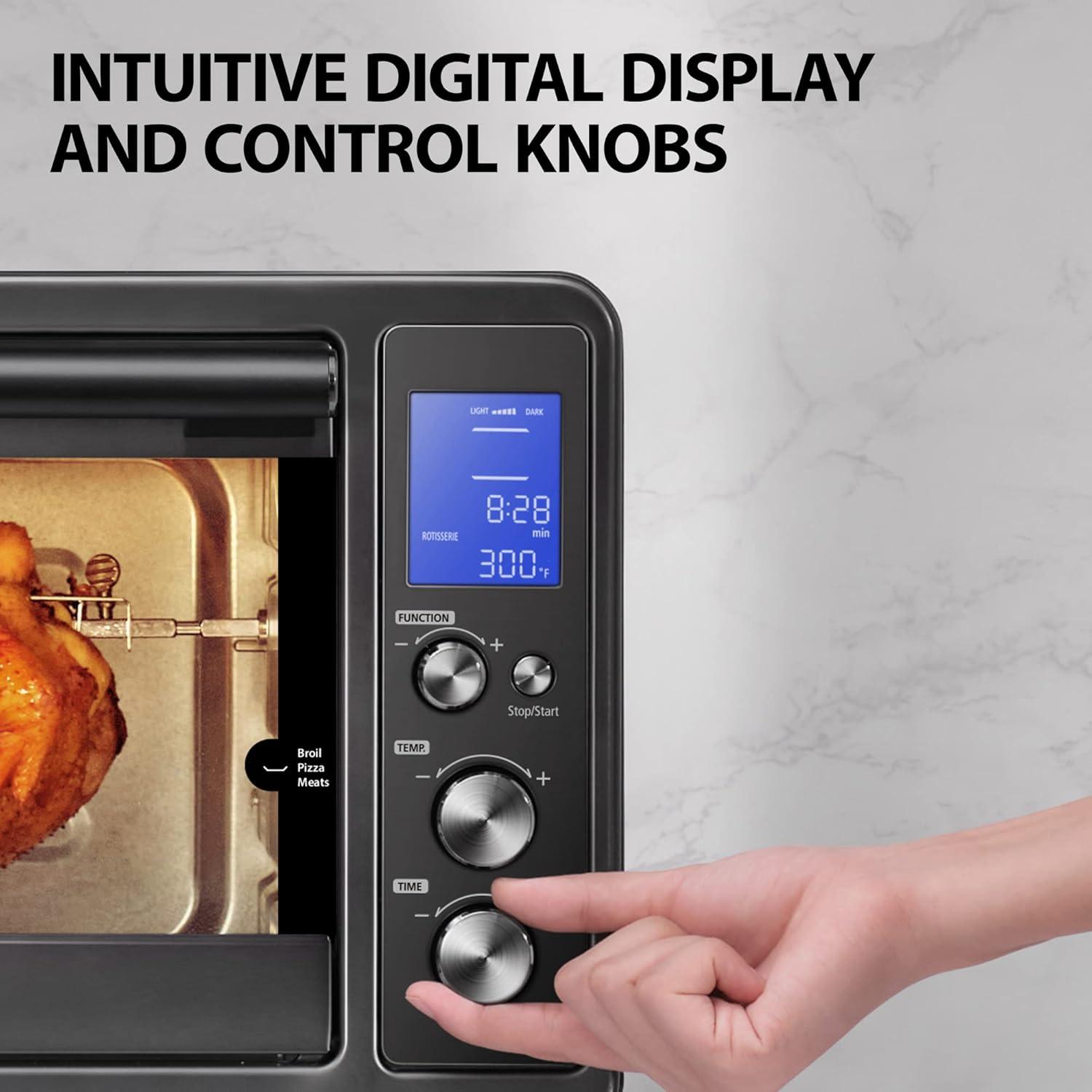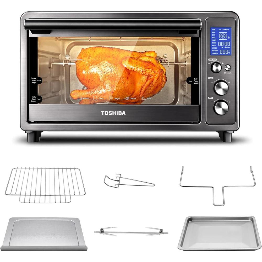 TOSHIBA Hot Convection Toaster Oven, Extra Large 34QT/32L, 9-in-1 Cooking Functions, Crispy Roast, Dehydrate, Rotisserie, 6 Accessories Included, 1650W, Black Stainless Steel(32 L Conv.)