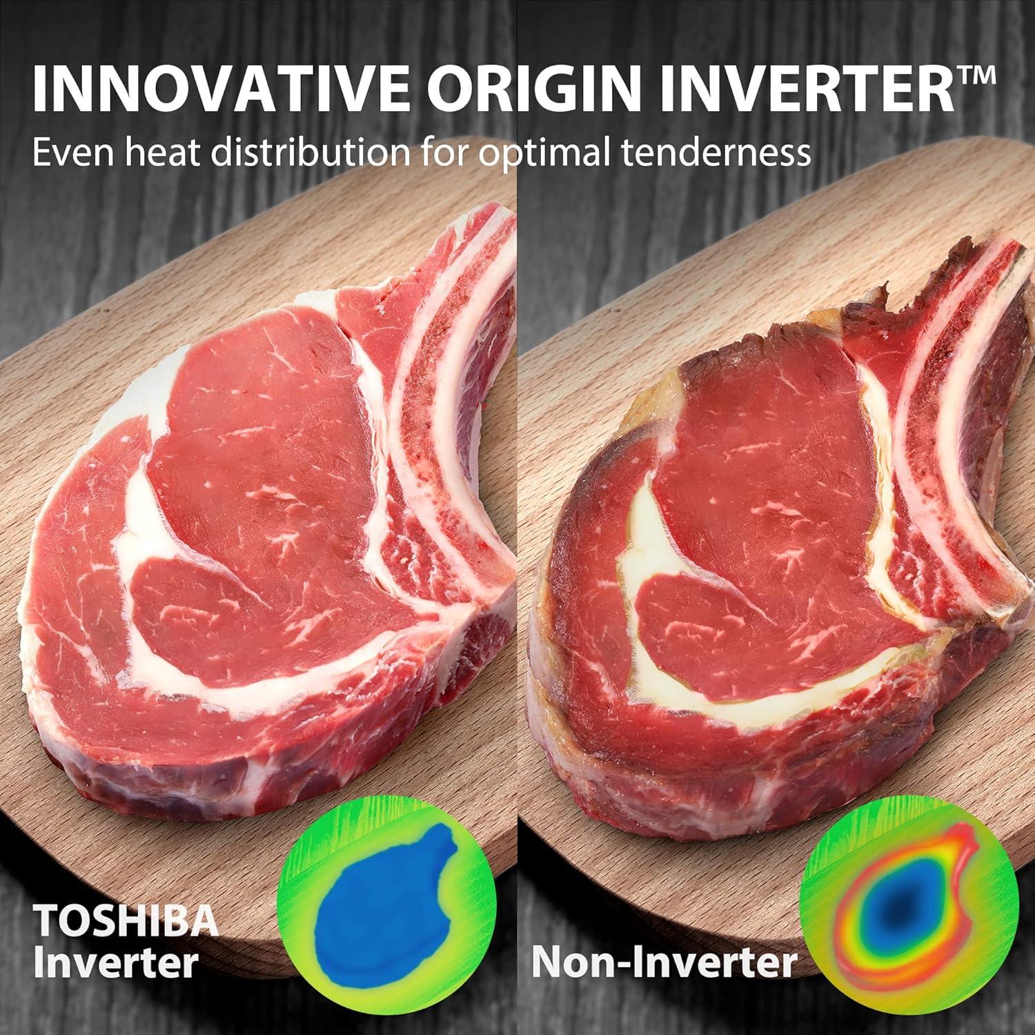 Inverter Microwave with Smart Sensor: Built-in humidity sensor intelligently adjusts power and cooking time, make sure your food is never undercooked or overcooked. Inverter Microwave technology also provides even cooking, reheating and defrosting with no cold spots, guarantee the maximum tender texture