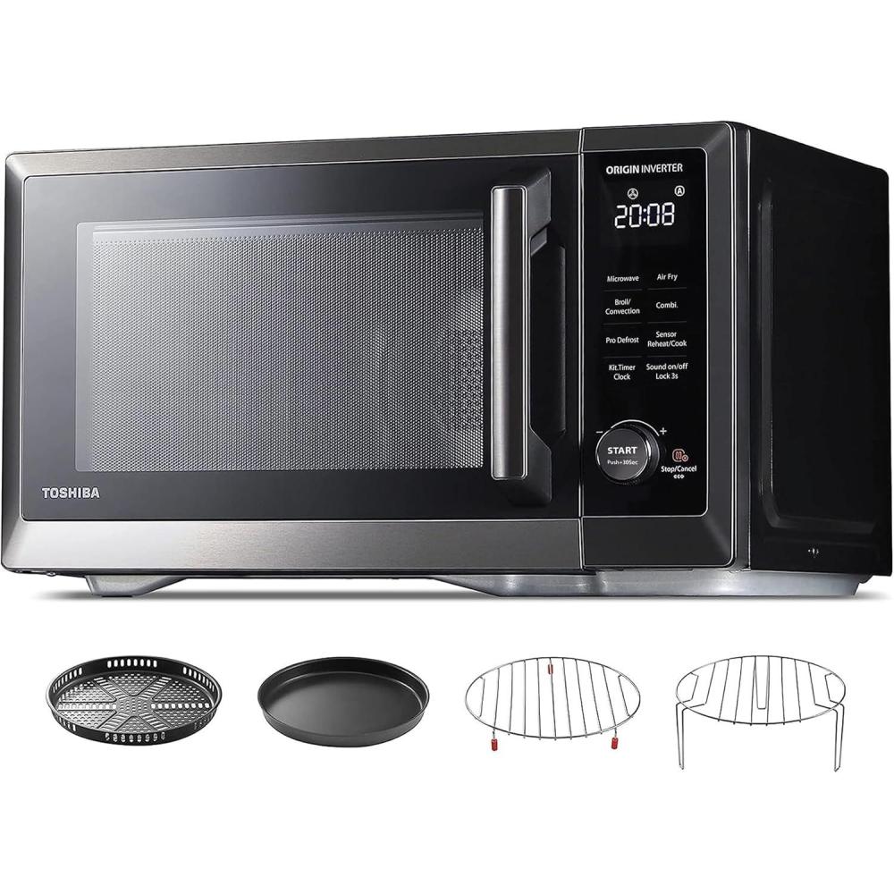 TOSHIBA Countertop Microwave Oven Air Fryer Combo, Inverter, Convection, Broil, Speedy Combi, Even Defrost, Humidity Sensor, Mute Function, 27 Auto Menu&47 Recipes, 1.0 cu.ft/30QT, 1000W(Black)