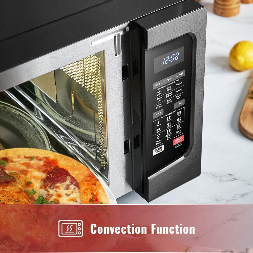 【One Kitchen Appliance, Better Texture】 Combines microwave and convection cooking in one appliance, with auto bake, defrosting and auto roast menus. Also with pre-programmed sensor menu for optimum results of popular foods like frozen pizza, vegetables and more.