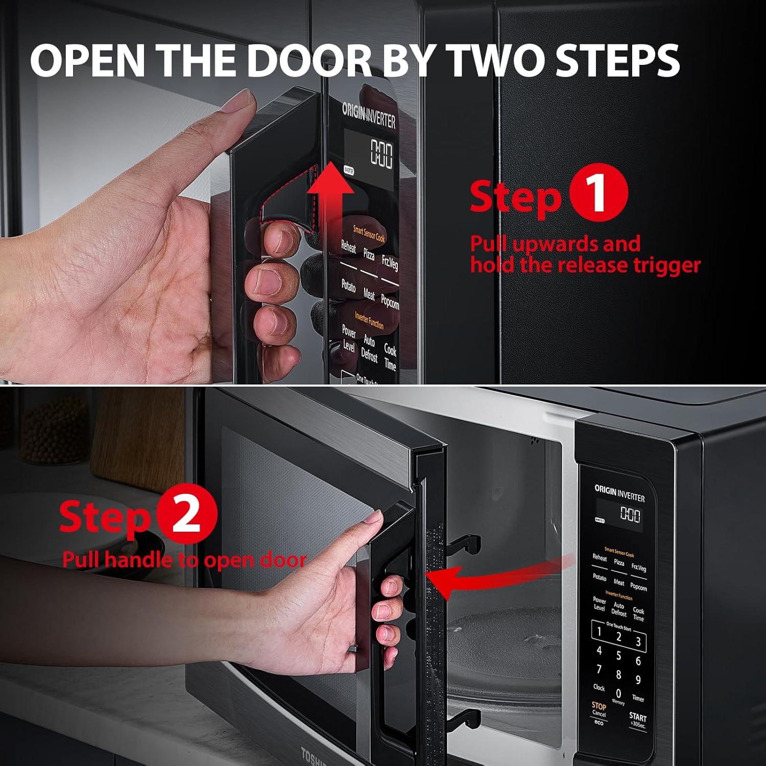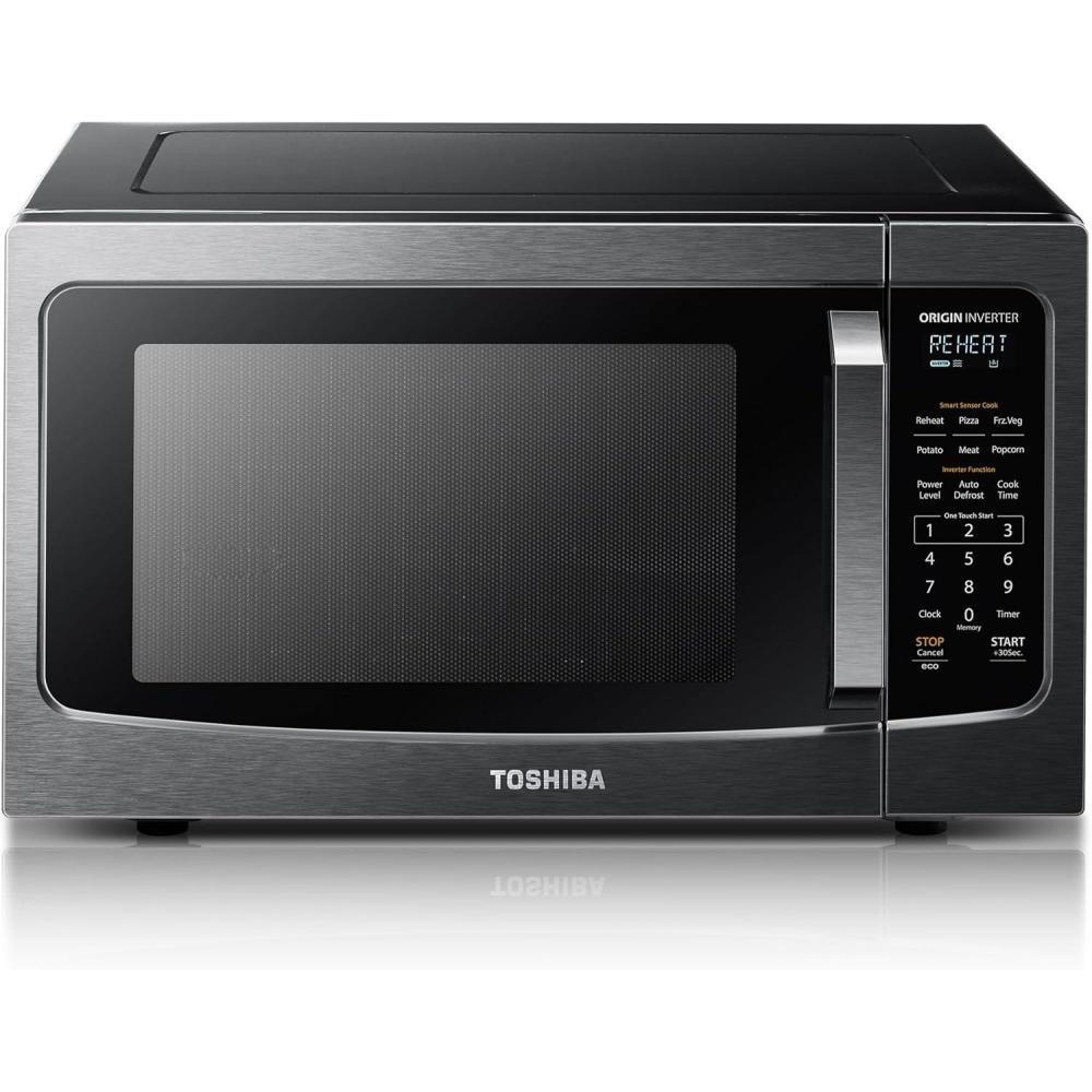 TOSHIBA ML2-EM12EA(BS) Countertop Microwave Oven With Stylish Design As Kitchen Essentials, Smart Sensor, ECO Mode & Mute Function, 1.2 Cu Ft With 12.4″ Turntable, 1100W, Black Stainless Steel(Inverter-1.6 Cu. Ft.)