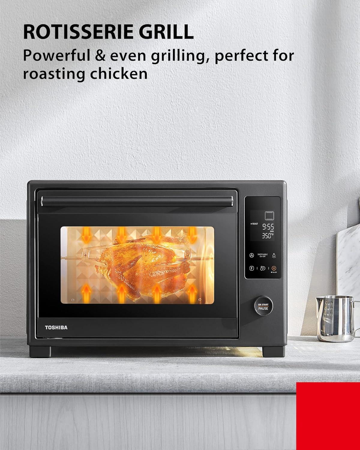 TOSHIBA Hot Convection Toaster Oven, Extra Large 34QT/32L, 9-in-1 Cooking Functions, Crispy Roast, Dehydrate, Rotisserie, 6 Accessories Included, 1650W, Black Stainless Steel(32 L Conv.)