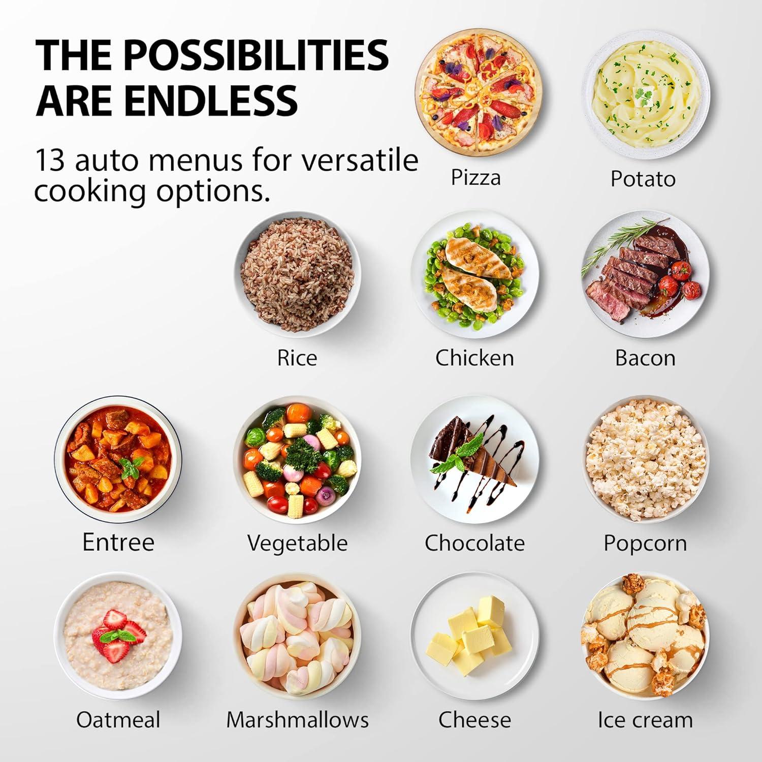 【12 Easy & Handy Auto Menus】 Enjoy optimum heating of 12 popular foods like pizza, potato, vegetables and more